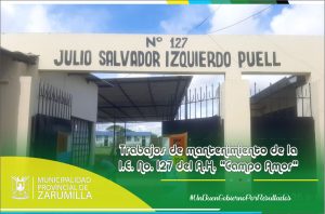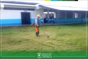 Seguimos atendiendo a las instituciones educativas de la provincia. Personal obrero, realizó trabajos de limpieza y mantenimiento de la Institución Educativa Nº 127 «Julio Salvador Izquierdo Puell» del A.H. «Campo Amor», en donde se procedió al corte de monte, limpieza y ordenamiento del mencionado plantel, toda vez que ante el periodo de lluvias que afrontamos, se ha incrementado la proliferación de mosquitos transmisores de diversas enfermedades como el dengue y malaria, por lo que resulta urgente la realización de estos trabajos para cuidar la salud y bienestar de los educandos.