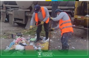 Personal de limpieza pública, continua con su importante labor de mantener limpia la ciudad, a pesar de las adversidades y el mal tiempo, ellos cumplen a cabalidad con su tarea diaria, con el único fin de mantener las calles y avenidas limpias. Estamos trabajando por el bienestar de los vecinos de Zarumilla.