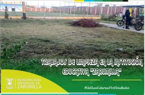 Personal obrero del área de medio ambiente, realizaron trabajos de mantenimiento en la Institución Educativa «Zarumilla». Dichos trabajos, consistieron en el corte de maleza y limpieza del interior del mencionado lugar, dando un mejor aspecto para la estudiantes y docentes que acuden a diario a la mencionada institución.