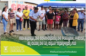 El alcalde de la Municipalidad Provincial de Zarumilla, Christhian Aguayo Infante, acompañado de los señores regidores, funcionarios y trabajadores de esta Comuna, participaron de la ceremonia de colocación de la primera piedra de la obra “Reconstrucción del tramo 1-50, Calle Tarapacá desde la cuadra 01 hasta 04 intersección con la Av. 28 de Julio, Distrito y provincia de Zarumilla del departamento de Tumbes»; la misma que se realizó en el lugar en donde se realizarán dichos trabajos. Además, se contó con la participación de los vecinos residentes en el lugar, quienes agradecieron por la ejecución de tan importante obra que beneficia a todo el barrio Miraflores, para mejorar su ornato y calidad de vida. Estamos trabajando por el progreso de Zarumilla.