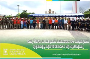 El alcalde de la municipalidad provincial de Zarumilla, Christhian Aguayo Infante, plana de regidores, funcionarios, trabajadores, autoridades civiles y militares y comunidad en general, participaron del ejercicio de simulacro multipeligro realizado a nivel nacional. Este ejercicio, tuvo como punto central la plaza de armas de esta ciudad, en donde personal de salud brindó los primeros auxilios a los heridos que eran trasladados en ambulancias por personal del ejército, marina, policía nacional y serenazgos, quienes recorrieron diferentes puntos del distrito, para evacuar a las personas afectadas. Cabe resaltar, la participación activa de escolares de la I.E. Nº 094 “Soterito López Espinoza”, quienes debidamente identificados, también se sumaron a este importante ejercicio, demostrando su preparación ante posibles emergencias. Finalmente, el alcalde provincial, dio a conocer el balance del simulacro, exhortando a la población a ser más participativa en este tipo de eventos y así demostrar su cultura de prevención ante posibles desastres naturales. Estamos trabajando por nuestro pueblo.