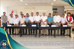 El alcalde provincial, Christhian Aguayo Infante, participó de una importante reunión de trabajo, en donde se trató acerca de la ejecución de la obra de la Plazuela de la Hermandad en el distrito de Aguas Verdes. En esta reunión, se expuso acerca de la importancia para el turismo en esta zona de frontera y los beneficios que traerá consigo su ejecución. Estuvieron presentes, nuestro alcalde provincial, Gobernador Regional, alcalde distrital de Aguas Verdes, funcionarios del ministerio de Agricultura, entre otras autoridades de nuestra región. Estamos trabajando por el progreso de nuestra provincia.