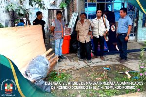 Ante la emergencia ocurrida en el A.H. “Edmundo Romero”, en donde una familia fue víctima de un incendio, personal de la subgerencia de gestión de riesgo de desastres, acudió inmediatamente para atender a los damnificados, a quienes se les proporcionó ayuda humanitaria. Acompañados de los señores regidores, Danny Sánchez Medina y Kelly Zapata Gómez, personal de esta subgerencia llevó ayuda inmediata como carpas, camas, colchonetas, plásticos, depósitos para agua, madera, triplay, entre otros, lo que les permitirá afrontar esta difícil situación por la que atraviesan. Recuerde que, ante cualquier emergencia, se puede comunicar al teléfono de defensa civil 921-281847 e inmediatamente será atendido.