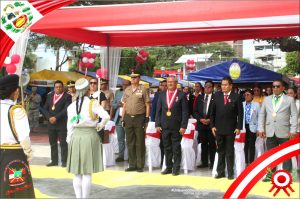 Escolares de todas las instituciones educativas públicas y privadas de la provincia, rindieron homenaje al 82° aniversario de la gloriosa Batalla de Zarumilla. En una apoteósica ceremonia y desfile realizado en la plaza de armas de esta ciudad, los estudiantes de la provincia, participaron patrióticamente de este acto que forma parte de los festejos programados en este mes de la victoria, en homenaje a los héroes caídos en la campaña militar de 1941. A paso marcial, hicieron su paso por la tribuna oficial, en donde estuvieron las principales autoridades de toda la región, demostrando verdadero amor por nuestra patria y por los hombres y mujeres valientes que entregaron hasta su vida por la defensa de nuestro sagrado territorio nacional. Felices fiestas, te desea la municipalidad provincial de Zarumilla.