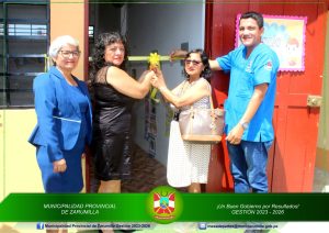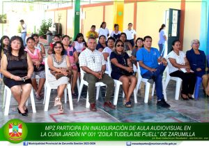Ceremonia de inauguración de la nueva biblioteca y salón audiovisual de la Cuna Jardín Nº 001 «Zoila Tudela de Puell», en donde participaron como representante del alcalde, el regidor Máximo León Vilela, especialistas de la DRET, Ilsen Morán, Yolanda Herrera, Mariana Calderón, Ruth Valdez y la directora de la institución, Lic. Judith Dioses Izquierdo, presidente de APAFA Jorge Luis Paulino, profesoras, padres de familia y alumnos del nivel inicial. Acto seguido, se dio paso al corte de lazo del salón biblioteca que está implementado con cuentos, libros, manualidades e imágenes para así fomentar el interés por la lectura. Finalmente, se mostró un área audiovisual para el entretenimiento de los pequeños estudiantes, la misma que cuenta con un proyector, computadora, ventiladores y grass sintético, creando así un ambiente acogedor para el aprendizaje a través de películas o vídeos.