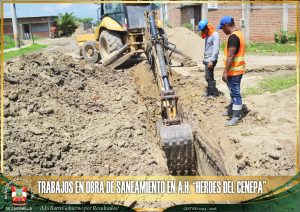 Un importante avance en su ejecución, presentan los trabajos que se vienen desarrollando en el A.H. “Héroes del Cenepa”, parte sur de la ciudad, en la obra denominada «Mejoramiento y Ampliación de Redes de Agua y Alcantarillado». Estos importantes avances, permitirán en un tiempo no muy lejano, que los vecinos del mencionado sector, puedan contar con sus respectivas conexiones domiciliarias de agua y desagüe, mejorando su calidad de vida. Gracias al constante seguimiento por parte de nuestro alcalde de esta obra, los trabajos se realizan sin inconvenientes por parte de la empresa constructora, esperando culminar pronto con los trabajos, para así entregar a los moradores del sector, esta obra por muchos años esperada. Estamos trabajando por nuestra ciudad.