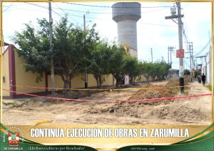 Continúan los trabajos de ejecución de la obra “Mejoramiento y ampliación del sistema de agua potable y alcantarillado de la calle Tumbes, entre las intersecciones de las calles Abad Puell y Av. Río Cenepa y calles aledañas en el A.H. “Pozo Elevado” – distrito de Zarumilla – provincia de Zarumilla – departamento de Tumbes”, la misma que presenta un importante avance, esperando su pronta culminación para ser puesta al servicio de los vecinos de este populoso y más antiguo sector de la ciudad. Este nuevo y moderno sistema de agua y alcantarillado, permitirá una mejor atención con estos primordiales servicios de saneamiento a los beneficiarios de este proyecto. Estamos trabajando por nuestra ciudad.