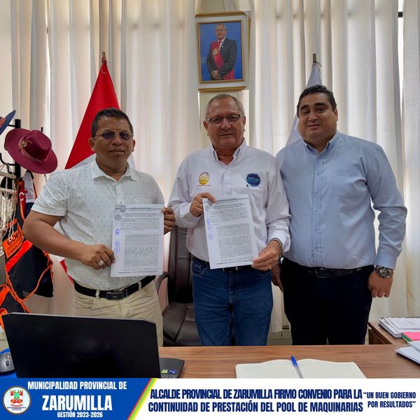 La Municipalidad Provincial de Zarumilla, liderada por el Abg. Christhian Aguayo Infante, continúa dando pasos importantes hacia el desarrollo de nuestra provincia. En una reunión clave con el Gobernador Regional, se concretó la firma del convenio que permitirá la continuación de la prestación del pool maquinarias pesadas, un recurso crucial para atender diversas necesidades prioritarias de la comunidad.