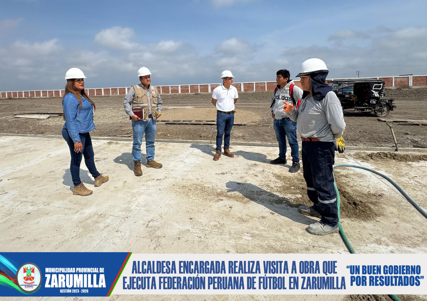 La alcaldesa encargada de la Municipalidad Provincial de Zarumilla, Juvitza Nole Infante, realizó una importante visita a la obra que ejecuta la Federación peruana de Fútbol en nuestra ciudad.