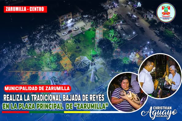 La Municipalidad Provincial de Zarumilla llevó a cabo con gran éxito la tradicional Bajada de Reyes en la plaza principal de la ciudad, en una emotiva actividad que congregó a autoridades locales, representantes religiosos y a la comunidad en general.
