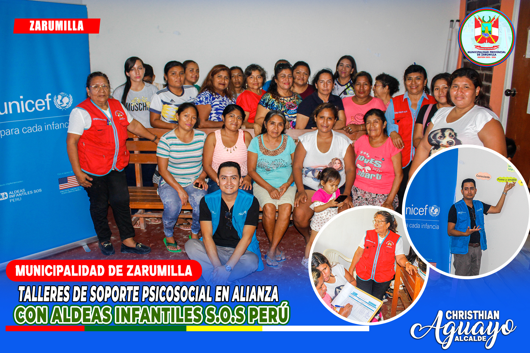 📌La Municipalidad Provincial de Zarumilla, a través de la subgerencia de Programas Sociales, en colaboración con Aldeas Infantiles SOS Perú, dio inicio a los talleres de soporte psicosocial para padres, madres, cuidadores y cuidadoras. Estos talleres, que se llevarán a cabo el 15, 16 y 17 de enero, tienen como objetivo proporcionar herramientas para el bienestar emocional y el fortalecimiento de las relaciones familiares.