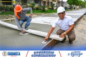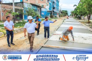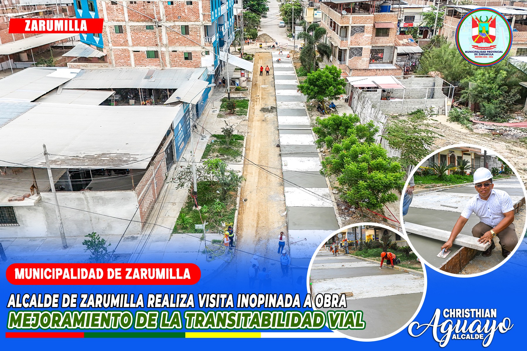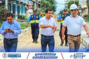 ✔El alcalde de Zarumilla, Abg. Christhian Aguayo Infante, junto al gerente de Infraestructura y Desarrollo Urbano, Ing. José Fernando Aldea Jaime, realizó una visita inopinada a la obra de la calle La Libertad. En el lugar, se está llevando a cabo la instalación de la red de agua con siete conexiones domiciliarias, la red de alcantarillado con siete conexiones, y la pavimentación con loza de concreto.