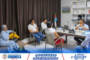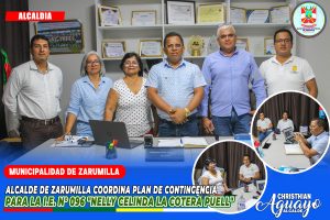 El alcalde de Zarumilla, Abg. Christhian Aguayo Infante, acompañado de la regidora Mg. Marisol Dioses Yzquierdo, sostuvo una reunión con la directora de la I.E. N° 096 «Nelly Celinda La Cotera Puell», Mg. Roxana Izquierdo, y un equipo técnico del Gobierno Regional de Tumbes para coordinar un plan de contingencia mientras se ejecuta la obra de mejoramiento en la infraestructura educativa.