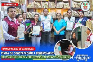 El subgerente de Participaci贸n Vecinal de la Municipalidad Provincial de Zarumilla, junto a los subprefectos provincial y distrital, llev贸 a cabo una visita de constataci贸n a los domicilios de los beneficiarios del Compromiso 1, con el fin de realizar la actualizaci贸n del acervo documentario.