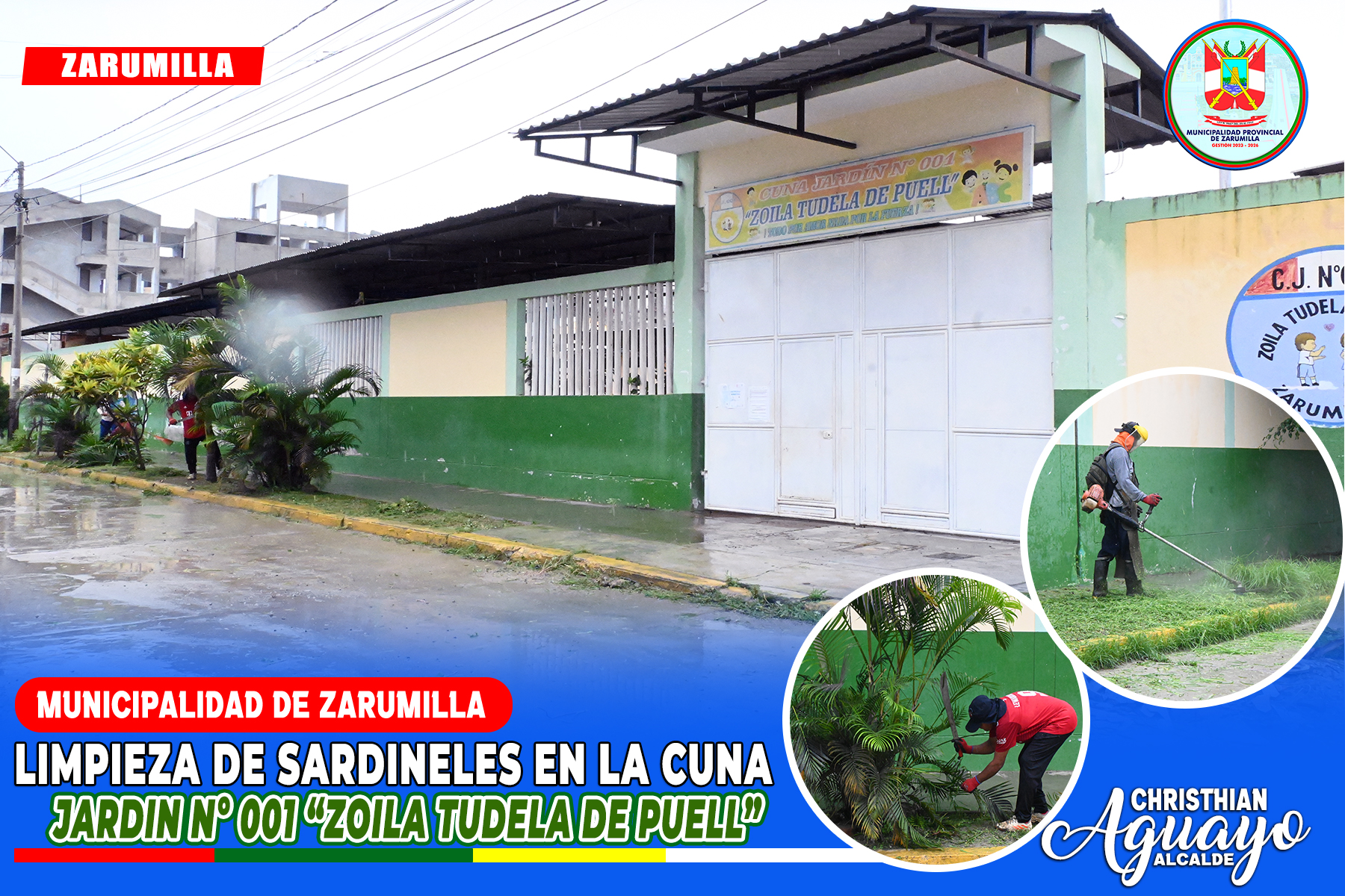 La Municipalidad Provincial de Zarumilla, a través de la subgerencia de Gestión Ambiental, llevó a cabo trabajos de limpieza y mantenimiento de sardineles en los alrededores de la Cuna Jardín Nº 001 «Zoila Tudela de Puell». Estas acciones buscan mejorar la seguridad y el aspecto del entorno de este importante espacio educativo para los más pequeños.