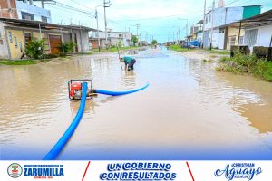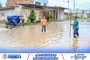 El alcalde provincial, Abg. Cristian Aguayo Infante, junto al equipo de la Subgerencia de Gestión de Riesgos de Desastre, visitó la Av. La Marina de Campo Amor para atender la emergencia provocada por las intensas lluvias. Se utilizaron motobombas para evacuar las aguas estancadas y reducir los riesgos para las familias afectadas.