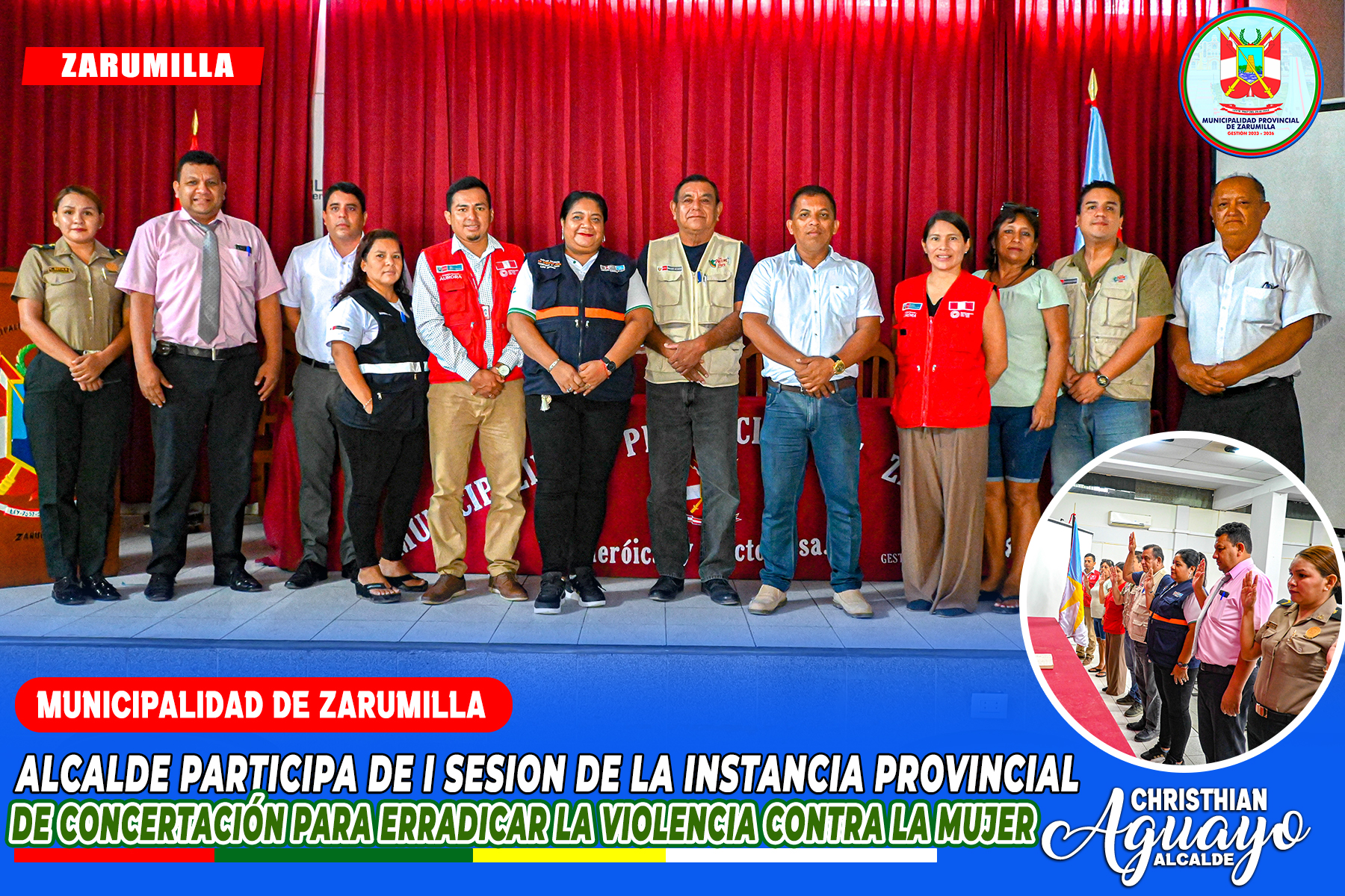 Con el compromiso de combatir la violencia contra la mujer y los integrantes del grupo familiar a nivel provincial, el alcalde Abg. Christhian Aguayo Infante, junto al gerente de desarrollo social Mg Luis Miguel Antón Ventura, participó en la I Sesión Ordinaria de la Instancia provincial de Concertación.